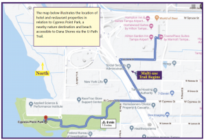 Our civic association has been monitoring and providing input on the various trail extensions, and we believe trail has continued to expand in a a positive direction. The Bayshore Trail extended access on the west end of the trail into Safety Harbor and to the Ream Wilson Clearwater Trail. On the east end of the trail, access has been added to Westshore Boulevard via the U-path and other extensions. An extension of the path was added on the north side of the Courtney Campbell Causeway between Bayport Drive and Rocky Point Island (across the water from Bahama Breeze). Construction for an overhead pedestrian bridge began in 2024.